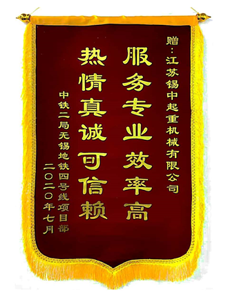 蘇州公司2020年度收到中鐵二局、黎星冶金授予的感謝錦旗